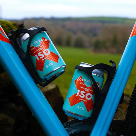 Our post-ride recovery station featuring smoothies, juices and Cold Bath ISO alcohol-free isotonic beer.
